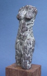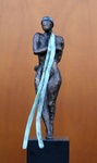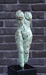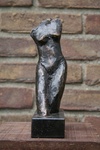 2008Bronzen beeldje gepattineerd in 2 verschillende kleuren op Belgisch hardsteen.
